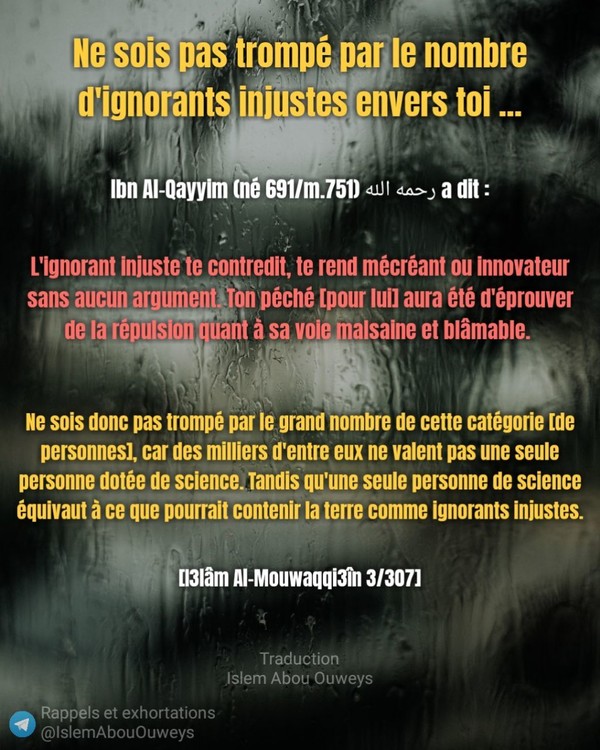 Ne sois pas trompé par le nombre d'ignorants injustes envers toi ...